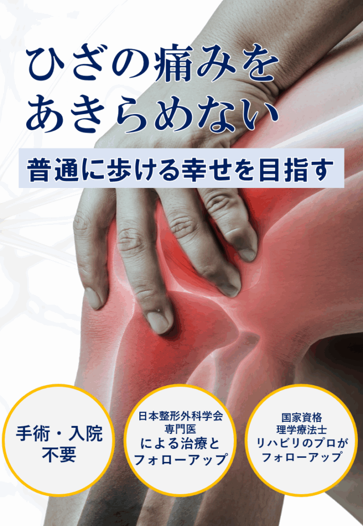 PRP療法は、変形性膝関節症の軟骨のすり減りや半月板の損傷、膝に水が溜まるといった症状に対して組織の修復を促し、関節の炎症を抑える効果があります。